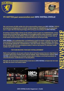Deze week ontvangen alle v.v.Hattem leden per mail een nieuwsbrief met informatie over de samenwerking van v.v.Hattem met 100% voetbal. Een samenwerking waar je als lid zelf je voordeel mee kunt doen.