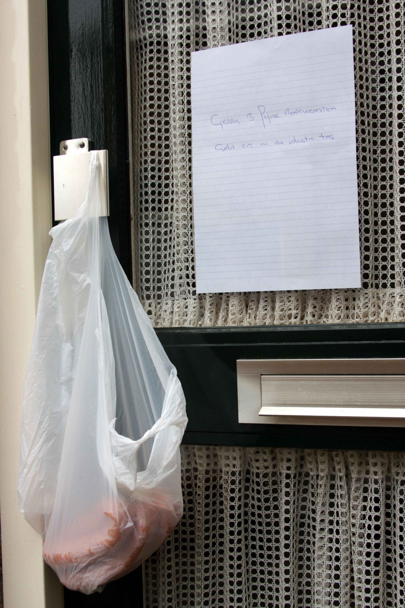 De worsten en gehaktballen zijn afkomstig van Slagerij van Guilik. Betalen kan aan de deur contant, maar ook eenvoudig via een QR-code met uw bank- of Tikkie-app.