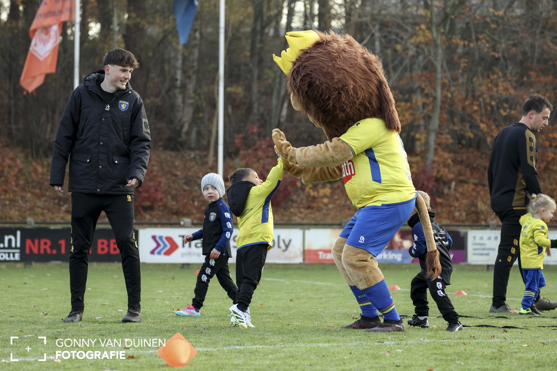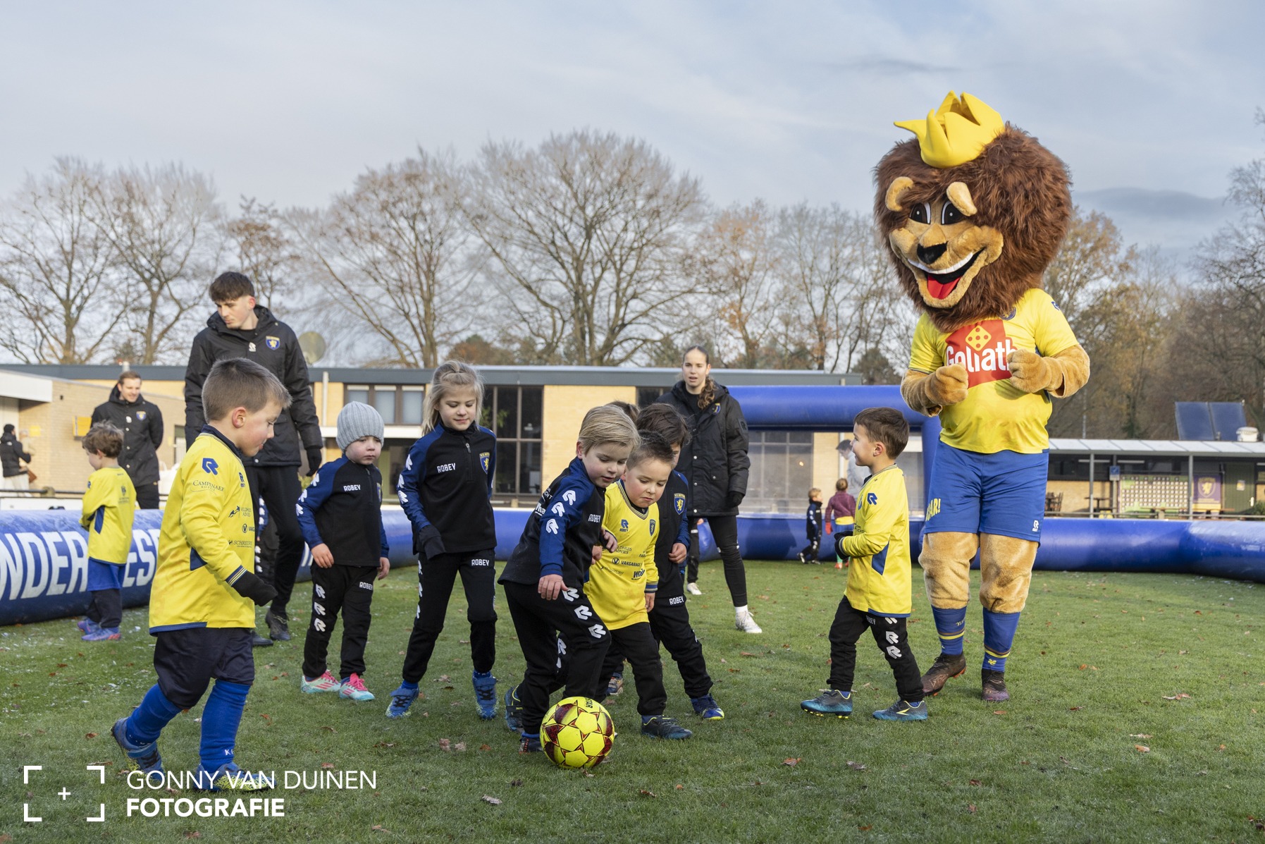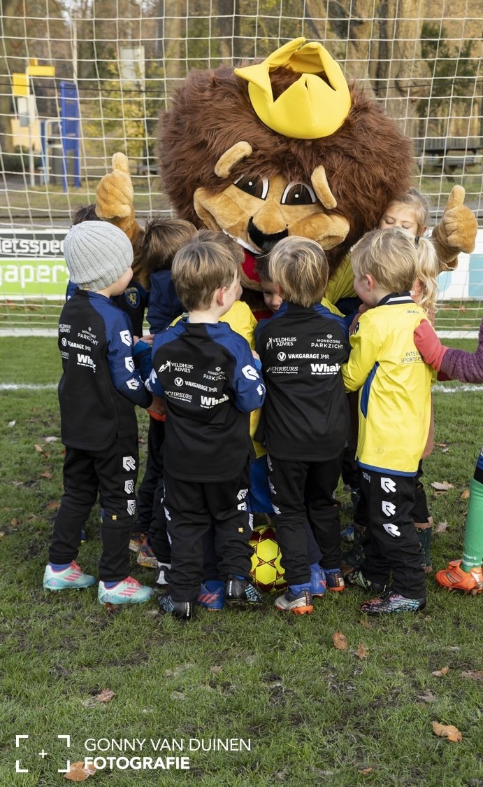 Zaterdagdebuut mascotte v.v. ’Attem tijdens training Welpjes